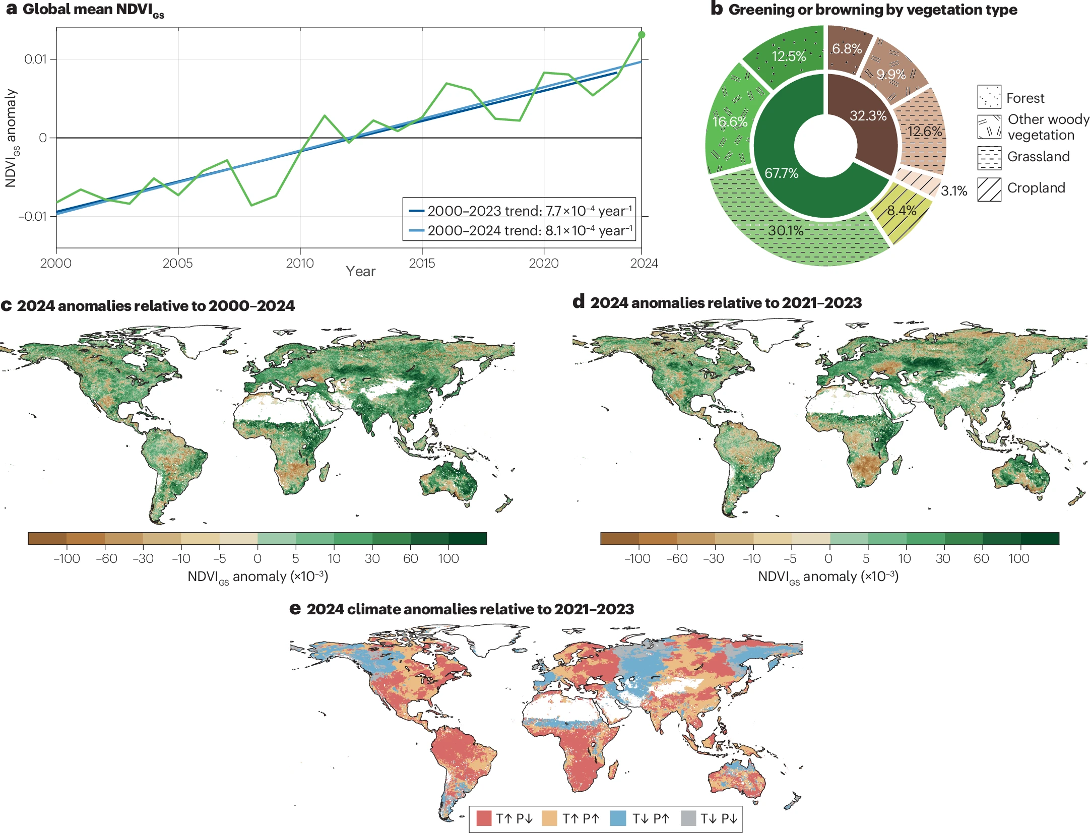 朴世龙院士团队揭示2024年全球植被绿度创历史新高