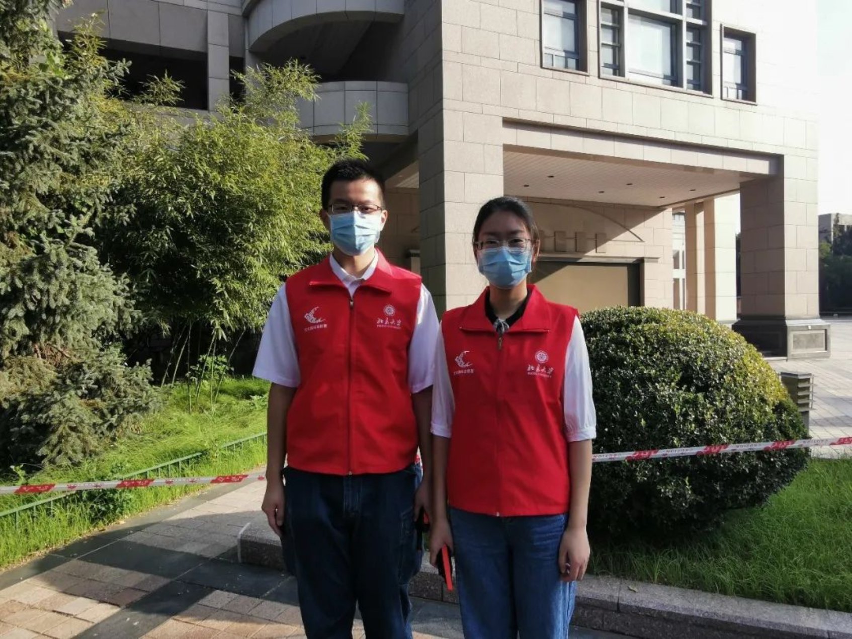 加入城市与环境学院“防疫先锋队”在院楼门口登记测温