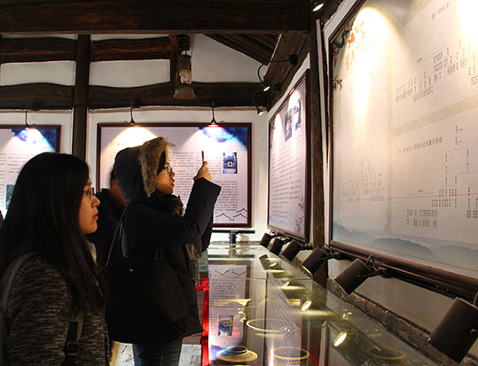古村的道路也别具特色,多用青石、灰石、紫石板铺路,质地坚固而漂亮。穿过一条条胡同小道,踩过刻有历史印记的台阶,同学们走进这古色古香的院落房间进行参观。除了房屋内部精致的修缮,展出的族谱也吸引了同学们的注意。相传该村祖先于明朝清乐年间随山西向北京移民由山西迁移至此,建立了韩式家族聚居之地,至今爨底下村居住的依旧是清一色的韩氏家族。讲解员向同学们介绍,爨底下村人口最高时达 54 户、183人,改革开放后,面对城市化的吸引,村内大量劳动力外出打工,并在城镇安家,2000年仅剩下29户、71人,村庄一度面临整体搬迁,古山村风貌和田园景观得以保留。经过20年休闲旅游业的发展,爨底下村由传统农业型村落演变为现代旅游型村落,人口密度重新分布,村落功能以及居住模式发生了显著的变化,生活空间悄然转型和重构。