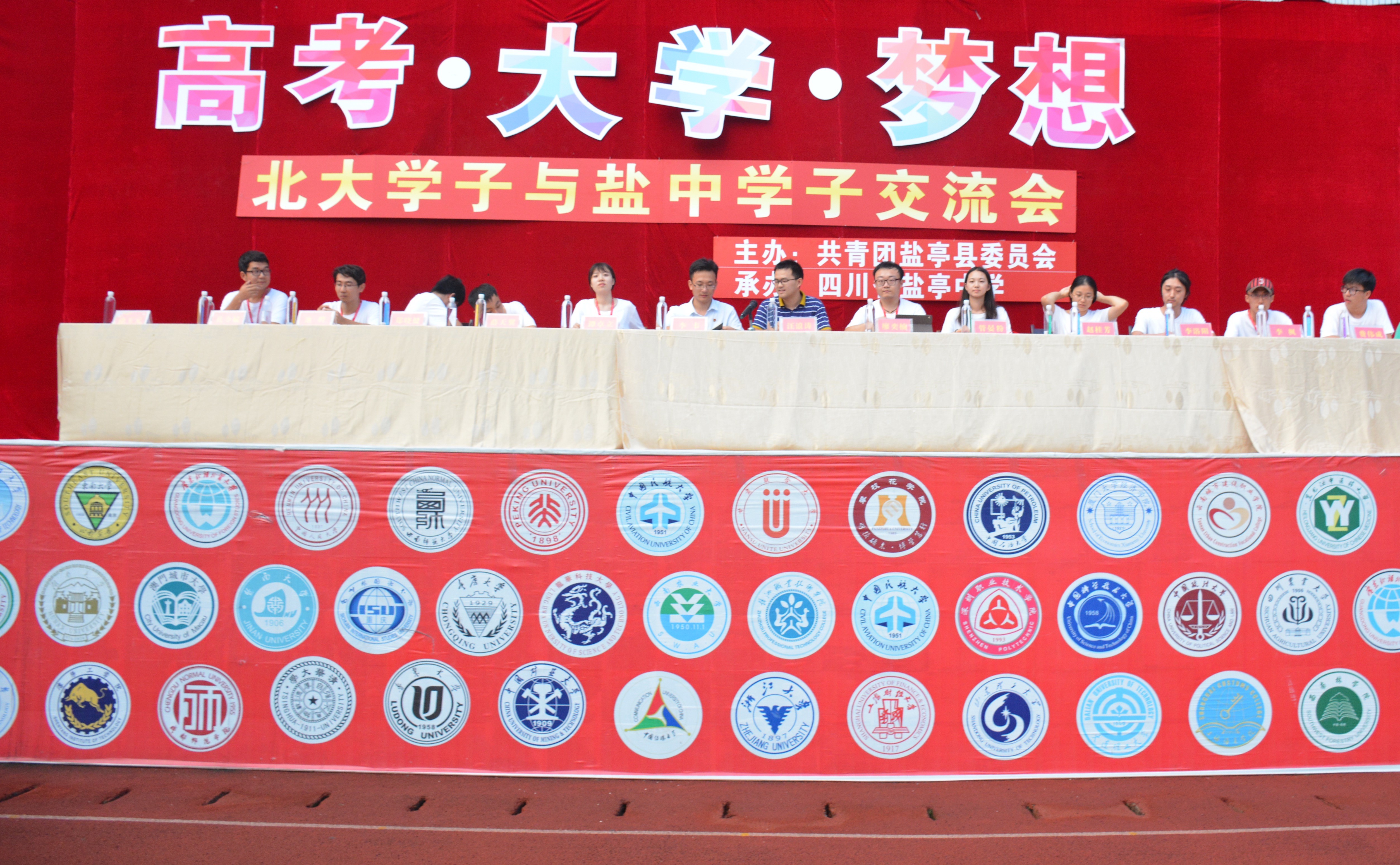 8月20日晚上,实践团成员来到盐亭中学城北校区,以“高考·大学·梦想”为主题,与全校1800多名师生进行了汇报交流。
