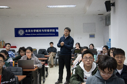 讲座伊始,由王宇凡简单介绍了分享院友。张弓博士是学院2004级地理学硕士、美国犹他州立大学博士。接着,张弓博士当年的导师陈效逑教授代表学院向他赠送了北京大学学籍卡留作纪念。陈效逑教授向大家指出,同学们要以学长为榜样,学会思考如何用大数据为祖国服务并且提出了自然地理学的背景对拓展同学视野的重要性。