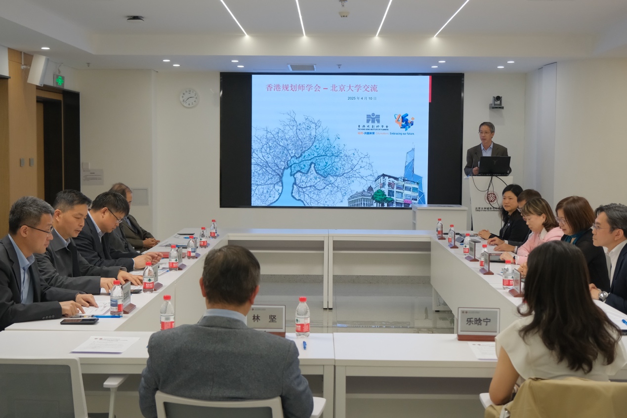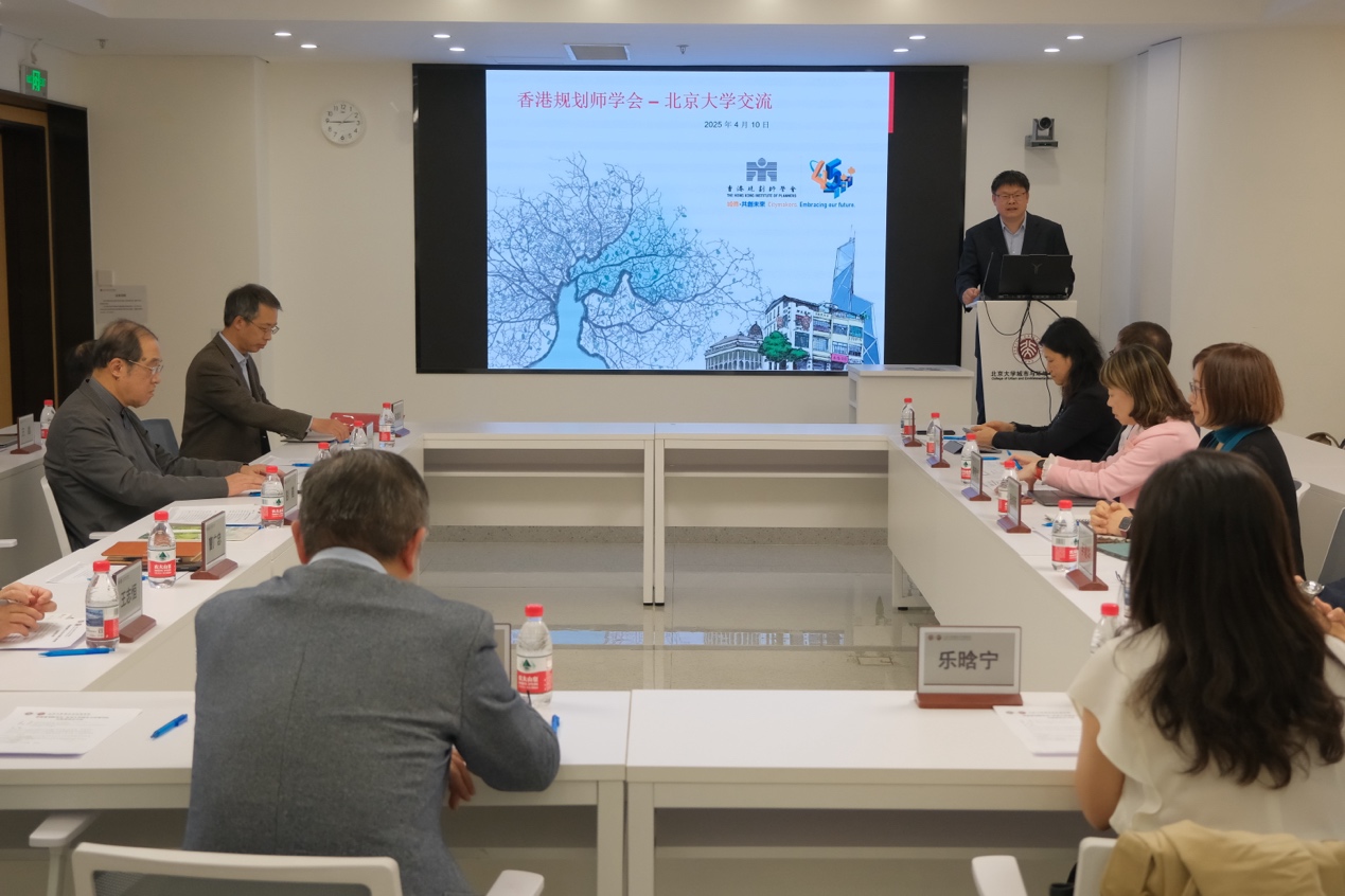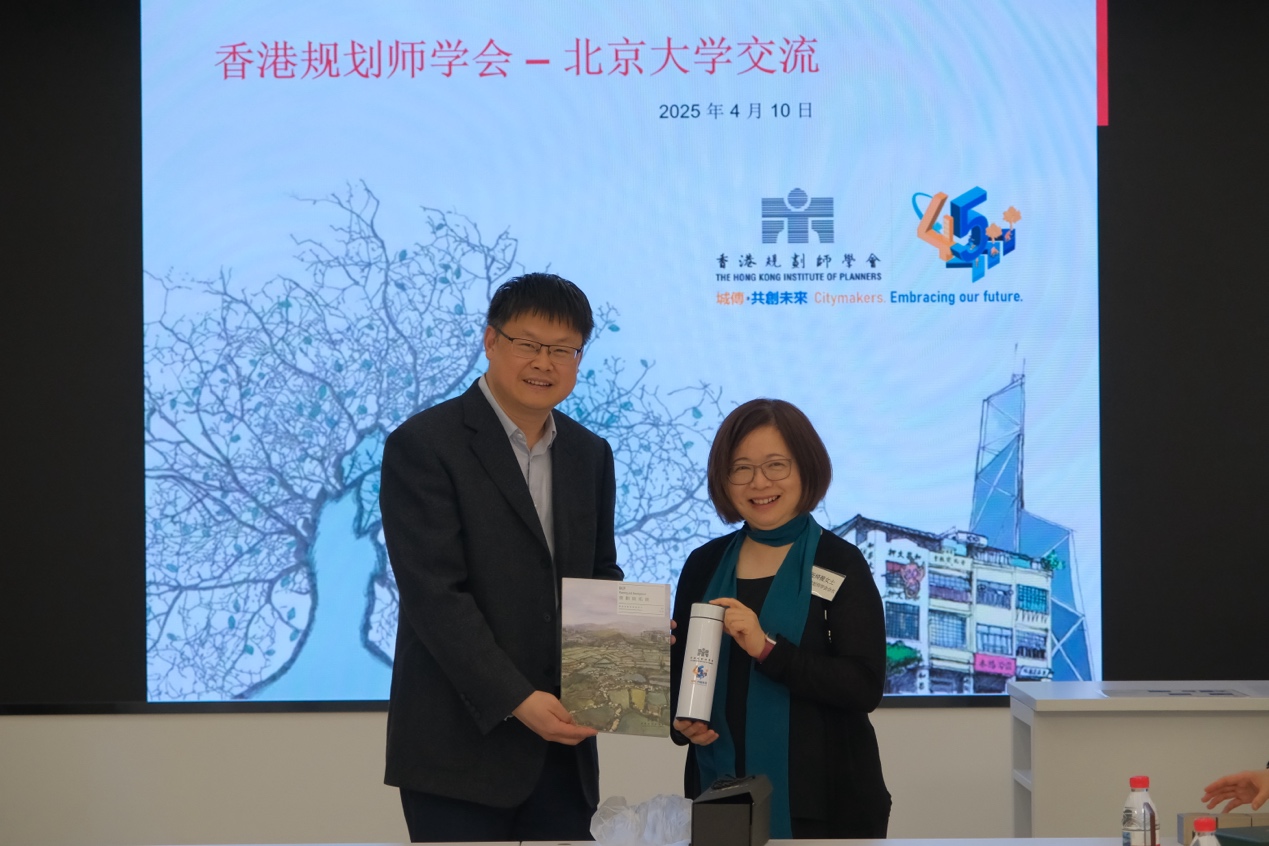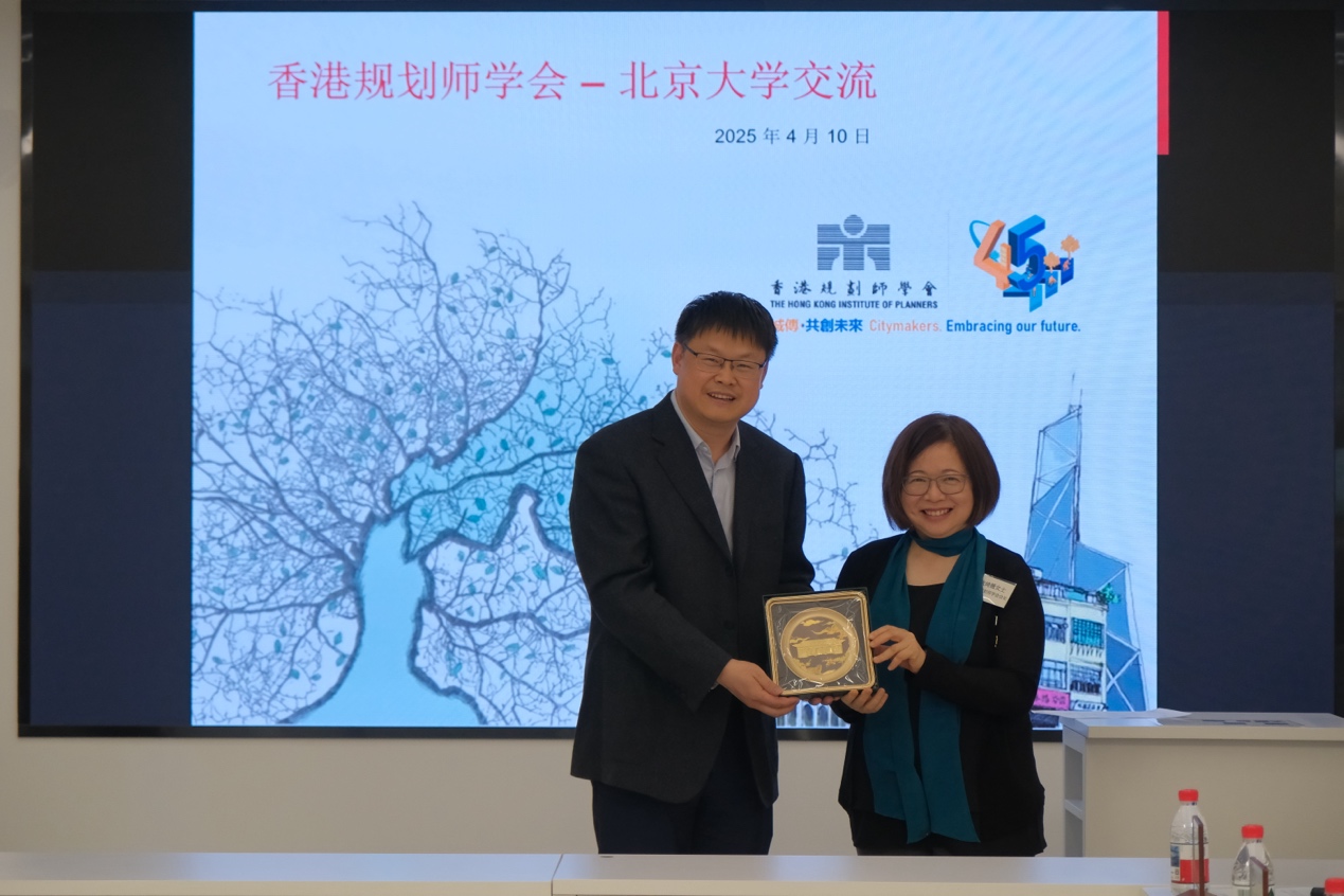 彭建教授代表学院对香港规划师学会代表团的到访表示热烈欢迎。他指出,希望借此座谈进一步深化双方在可持续城市发展理念上的共识,持续拓展双方在专业实践与社会服务等领域的合作深度与广度。致辞结束后,彭建教授代表学院向香港规划师学会赠送了北京大学纪念品,张绮薇会长则回赠学会纪念品。
