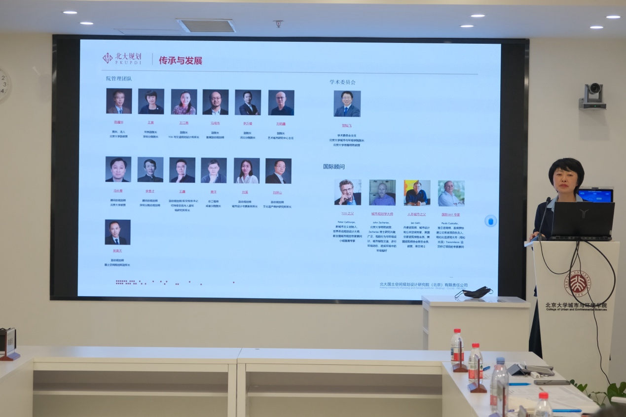 王昊常务副院长介绍了北大国土空间规划设计研究院的组建背景与发展定位。她指出,研究院前身为北京大学城市规划设计中心,2020年顺应国家国土空间规划体制改革,由侧重“大规模建设”转向强调“可持续治理与运营”,完成机构升级并更名。研究院以国土空间治理为核心,以社会经济与金融要素为重点研究对象,致力于打造“国家智库、北大平台、学科支柱”三位一体的高端创新基地。随后,副总规划师王鑫详解介绍了规划院过往工作思路和取得的系列成果。